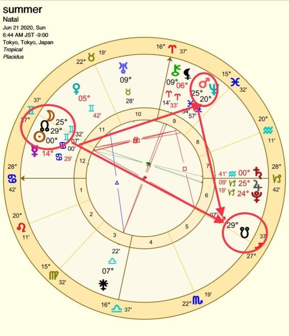 2020年の夏至から読んでいきますが、その前に春分で「2020年の始まり」をおさらいです。