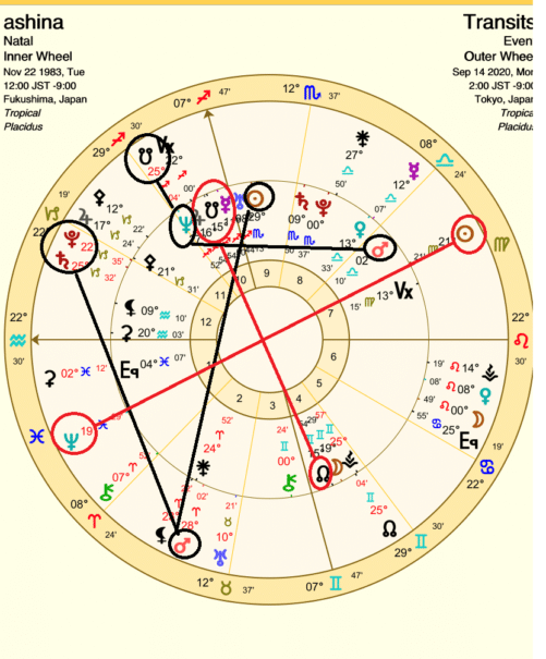 そこに、トランジットの魚座海王星と乙女座太陽が柔軟サインのグランドスクエアを作ることで