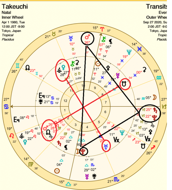 また、天秤座冥王星は、牡羊座と山羊座のカーディナルスクエアと T スクエアを作りますから