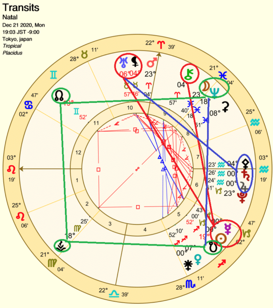 これは、冬至から8時間後に起こる水瓶座土星と木星のグレートコンジャンクションのチャートです。