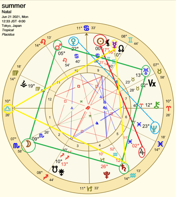 では、これから3ケ月の展望を、夏至のチャートで読み解きます。