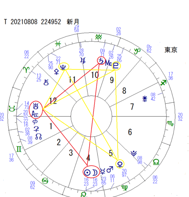 そんな中、8/8の新月は獅子座16°で4ハウスで起こりますから