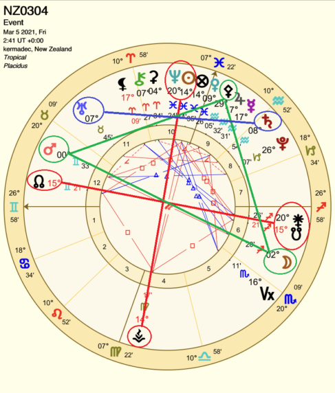 2021年3/11の東日本のチャートでは、国民を意味する月を傷つけるハードアスペクトがなく