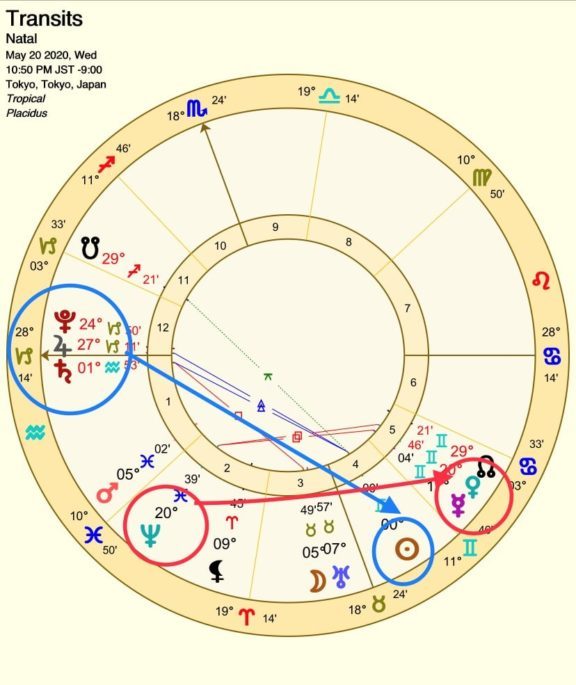 また、山羊座24°~22°への逆行では、コロナ禍による引きこもり生活から脱却したら
