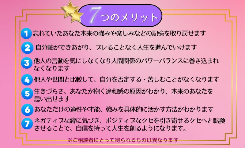 あなたらしい生き方ができるのか等、あなたの資質を総合的に読み解いていきます。